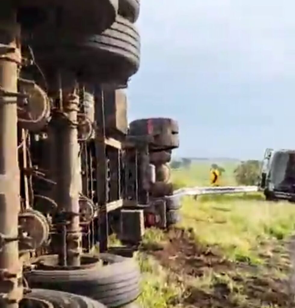 Carreta tomba no final da Castello Branco em Santa Cruz do Rio Pardo